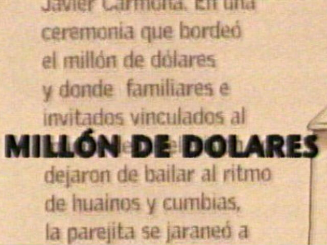 La revista Ellos & Ellas publicó una nota donde afirma que la boda entre Tula Rodríguez y Javier Carmona habría costado un millón de dólares y que horas antes los novios habrían firmado un acuerdo de separación de bienes. Además, Tula respondió a las preguntas sobre su matrimonio en un conocido programa de espectáculos. También, el video del cuadre de Javier Carmona a Metiche.