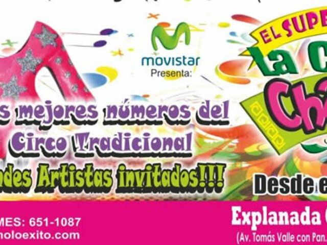 El personaje más carismático de la televisión peruana nos trae un espectáculo lleno de magia, color y diversión, con más de 40 artistas en escena. Puede comprar las entradas en Teleticket de Wong y Metro. El Circo de la Chola Chabuca se encuentra ubicado en la explanada del Centro Comercial Plaza Norte y estará hasta el 19 de agosto.