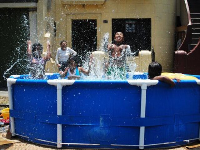 Los vecinos del Callao han encontrado una manera peculiar de disfrutar del verano: A través del uso de las piscinas armables.
