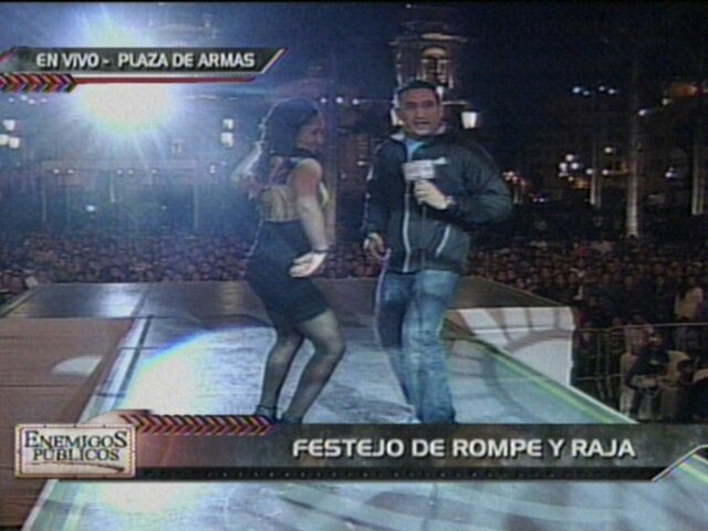 En un enlace microondas desde la Plaza de Armas de la ciudad de Lima el integrante de Enemigos Públicos celebró el Día de la Canción Criolla, bailando con una de las hijas del cantante Pepe Vásquez.