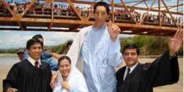 Con sus 2,26 metros de altura Margarito Machaguay es considerado el hombre más alto del Perú y uno de los personajes más queridos por los peruanos. Ahora él junto a su familia vive en Bagua Grande.