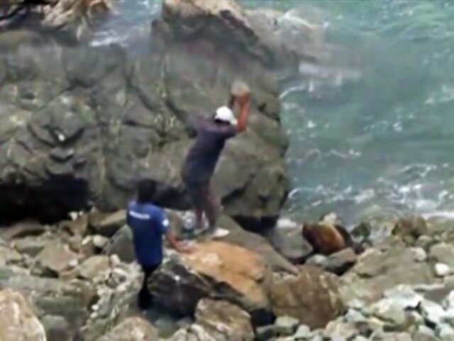 Las imágenes son realmente condenables. Dos pescadores mataron a pedradas a un indefenso lobo marino que se encontraba varado en la caleta Los Chimús.