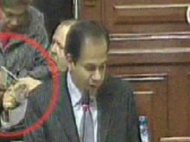 La congresista Luz Salgado fue captada mientras vendía rifas a su colega Octavio Salazar durante la interpelación al ministro del Interior, Wilfredo Pedraza.
