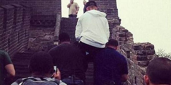 Gracias a las redes sociales y a una turista que estaba en el lugar, una foto del cantante miccionando en la Gran Muralla china, está publicada en todos los medios estadounidenses.