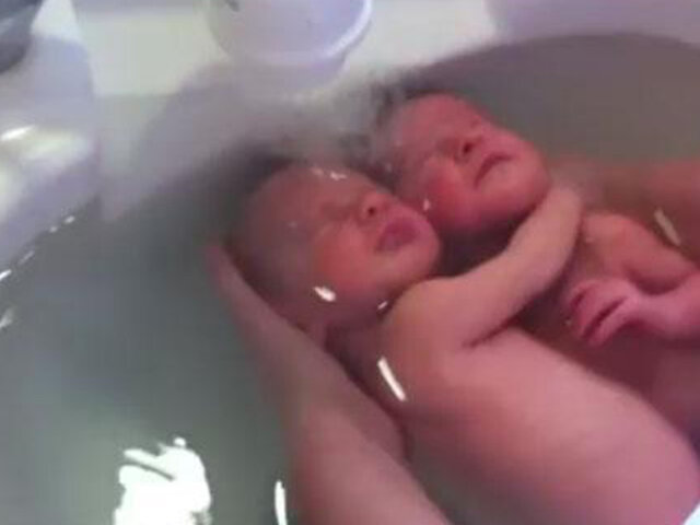 Las imágenes publicadas hace una semana muestran a dos gemelos recién nacidos en un placentero baño, pero lo más tierno es que ambos en ningún momento dejan de abrazarse e imitan la posición que por meses adoptaron en el vientre de mamá.