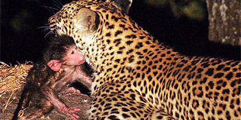 Un video que fue grabado en el 2006 pero que salió a la luz recientemente es una de las pruebas que demuestran que estos sangrientos depredadores también pueden compadecerse ante sus victimas: una joven leopardo de 3 años adoptó a una cría de babuino tras matar a su madre.