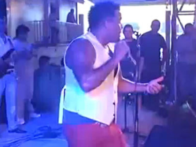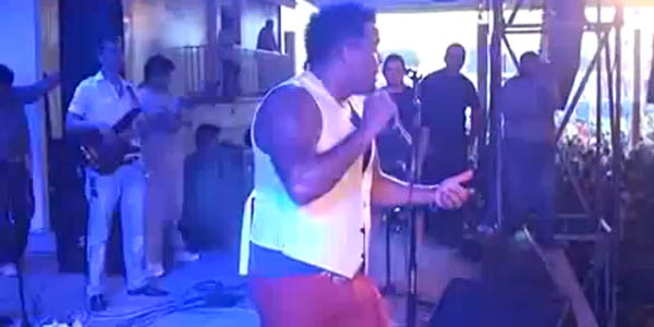 Nolberto, líder de "Alkalá", cantaba "Yo por tu amor", hit de la banda, cuando se aferró a uno de los caños que servía como estructura del escenario.
