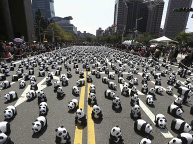 Los cerca de 1.600 pandas de papel couché, fueron realizados por el artista francés Paul Grangeon, quien ha hecho una gira mundial con estos diseños para advertir sobre el peligro de extinción del panda gigante.