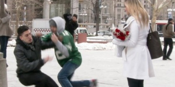 Una pareja quiso mofarse de las personas que transitaban por un parque de Filadelfia y no tuvieron mejor idea que simular una propuesta de matrimonio. La broma consistía en la que al novio le robaban la sortija en plena petición de mano. No se pierda las reacciones de los testigos.