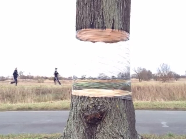Los transeúntes en Postman, Alemania, se vieron sorprendidos por un tronco de árbol que se sostenía en el aire sin ninguna ayuda aparente. Los diseñadores gráficos Daniel Siering y Mario Schuster pintaron en una parte del tronco un paisaje casi idéntico al que hay detrás, logrando esta una imagen impresionante.