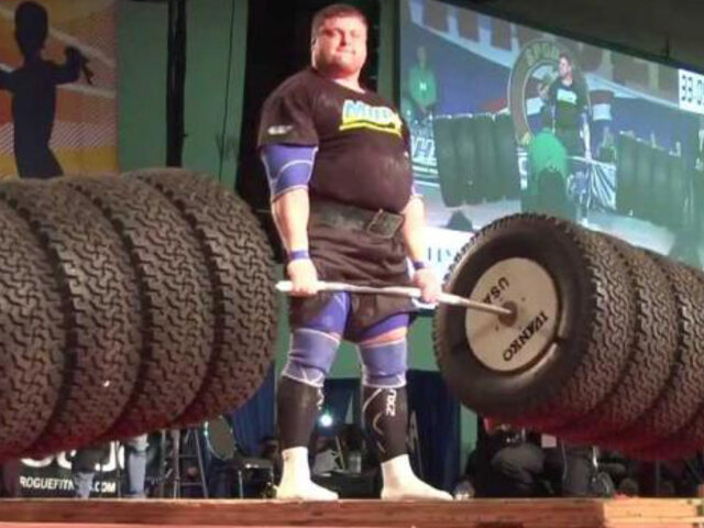 El hombre más fuerte del mundo levanta 524 kilos en llantas de camión