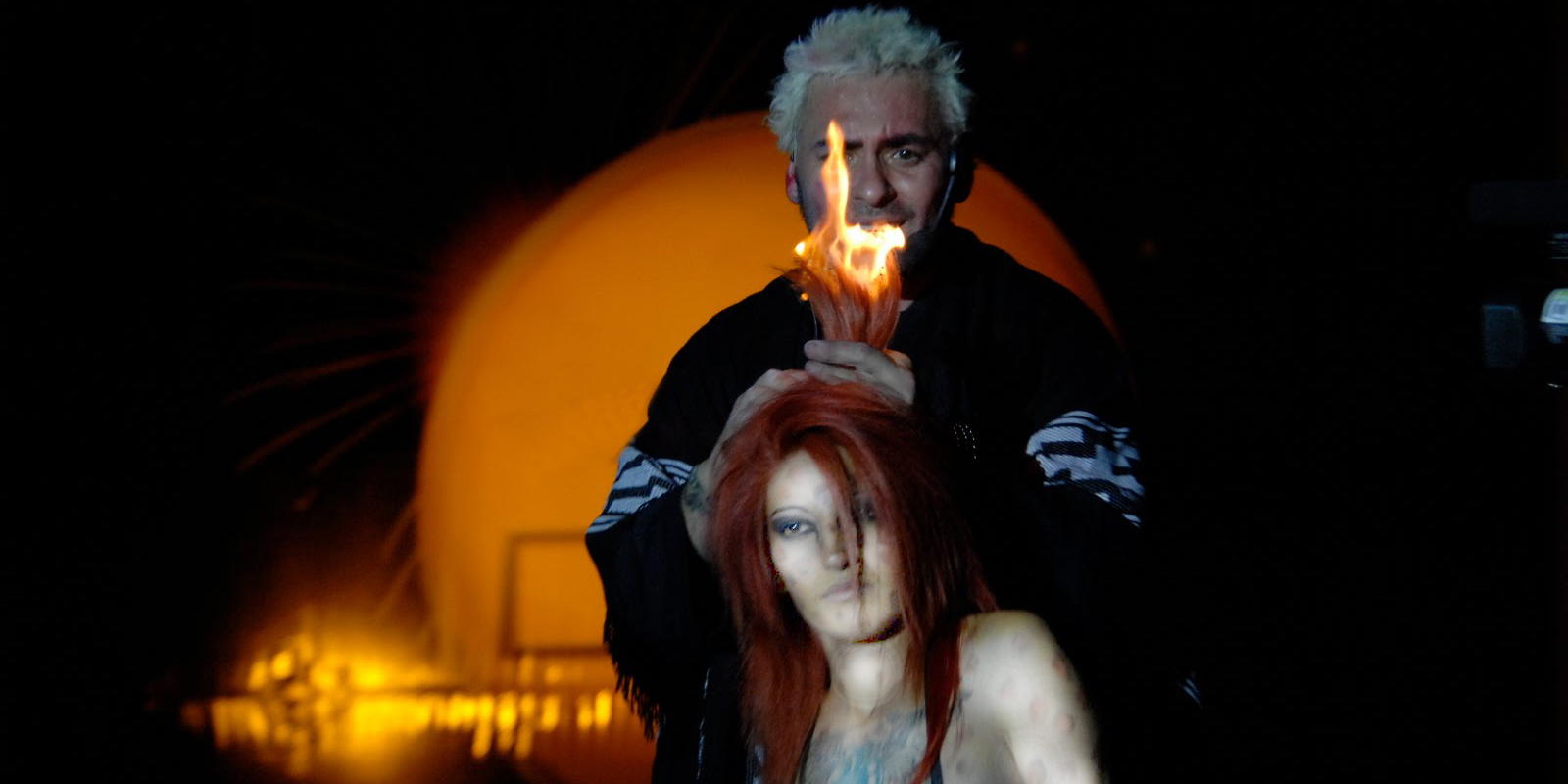 Un estilista utiliza fuego para cortar y tratar el cabello de sus clientes
