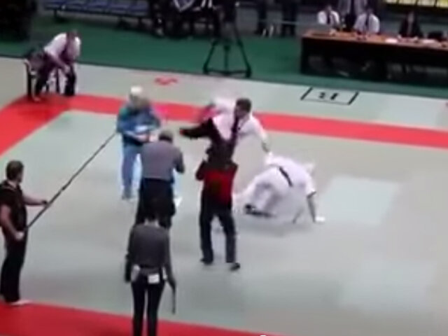 VIDEO: réferi sufre ataque de ira y noquea a los luchadores de karate