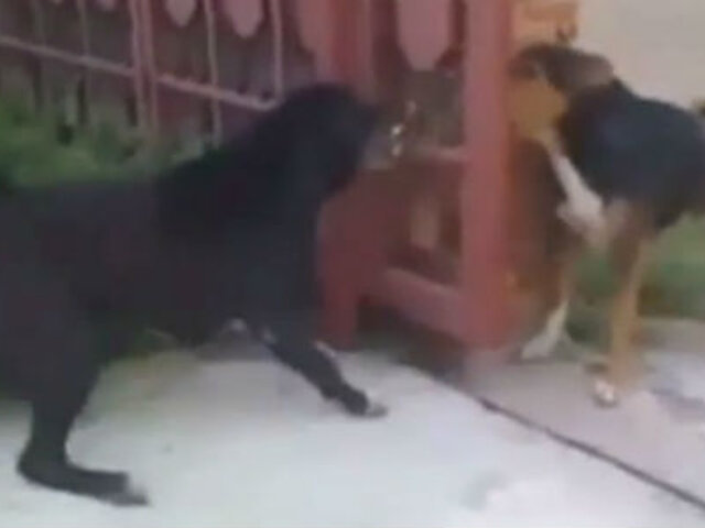Estas imágenes registradas por un video aficionado muestran una divertida pelea entre dos perros que parecen amenazarse con despedazarse el uno al otro. Lo peculiar de esta escena es que los dos canes se ladran mutuamente a través de una reja que se encuentra abierta y deja un amplio campo a tan solo unos centímetros para librar una verdadera lucha cuerpo a cuerpo. Sin duda, ésta riña se ha convertido en la más ‘ridícula’ de Internet y del mundo entero.