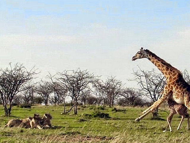 Las imágenes fueron registradas en la reserva de Masai Mara, Kenya, donde se ve a una mamá jirafa defendiendo a su cría de los depredadores voraces. El video muestra cómo los leones rodean a su presa, sin embargo en animal de gran tamaño protege a su cría entre sus piernas. A pocos días de haber sido publicado en YouTube, el video superó las 70 mil visitas.