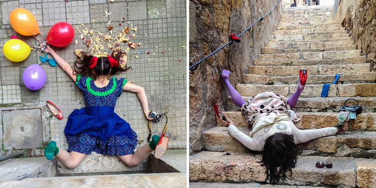 El artista Sandro Giordano decidió crear arte de una de las situaciones más cotidianas: las caídas. Si los curiosos incidentes que vemos en la televisión, cuyos casos datan de hace años, tienen tanto éxito, por qué no lo haría una serie de divertidas fotografías que retratan lo mismo. Esta fue la idea que inspiró al fotógrafo, claro, además del doloroso tropiezo que sufrió con su bicicleta.