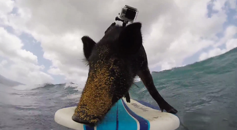VIDEO: conoce al cerdo surfista que causa sensación en Nueva Zelanda