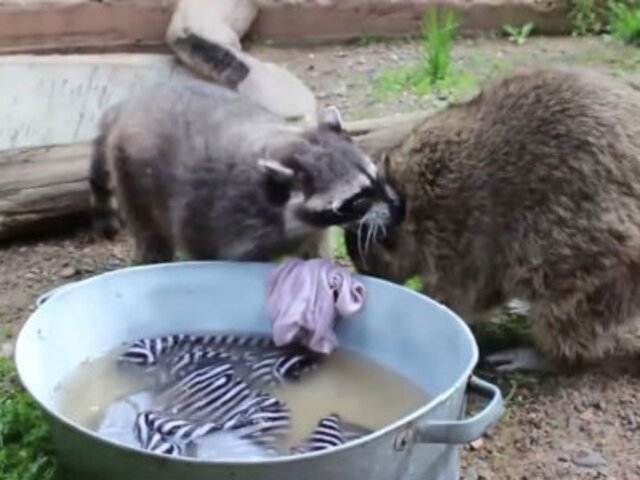 Mapaches protagonizan singular pelea en competencia por ‘lavar la ropa’