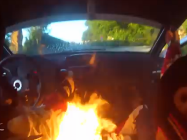 En Bélgica, el conductor y su copiloto competían por el rally Geko Ypres 2014, cuando de repente el fuego comenzó a expandirse dentro de su auto.