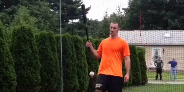 Mike Stud es una aficionado del béisbol pero más parece un maestro del malabarismo cuando llega la hora de batear.