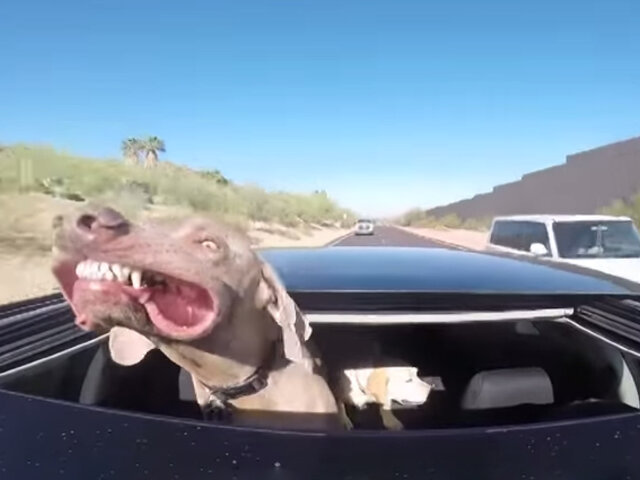 Un hombre decidió colocar una cámara en el techo de su auto para grabar las divertidas reacciones de su mascota mientras disfruta de un paseo.