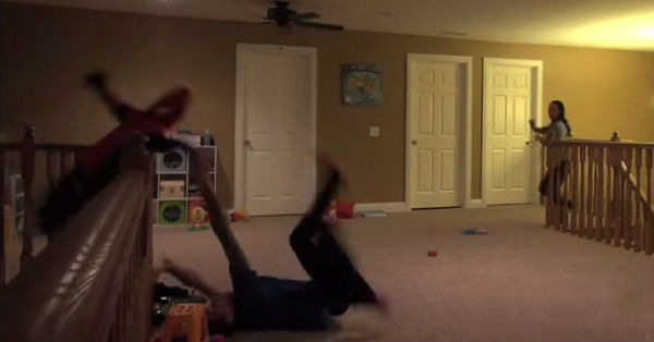 La terrible broma que un padre le juega a su esposa se ha convertido en un éxito de YouTube. El video inicia cuando la mujer llega a su casa y encuentra a su esposo jugando con los niños, uno de los cuales lleva puesto un disfraz de Spiderman, luego la joven se dirige a la cocina, y el hombre rápidamente cambia al menor de sus hijos por un muñeco de plástico. Segundos después, la fémina ve como su esposo lanza accidentalmente al pequeño por arriba de las escaleras. Entonces, se desata el pánico.