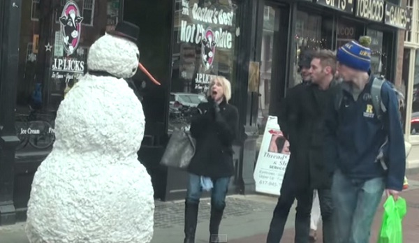 VIDEO: muñeco de nieve causa pánico en las calles de Boston