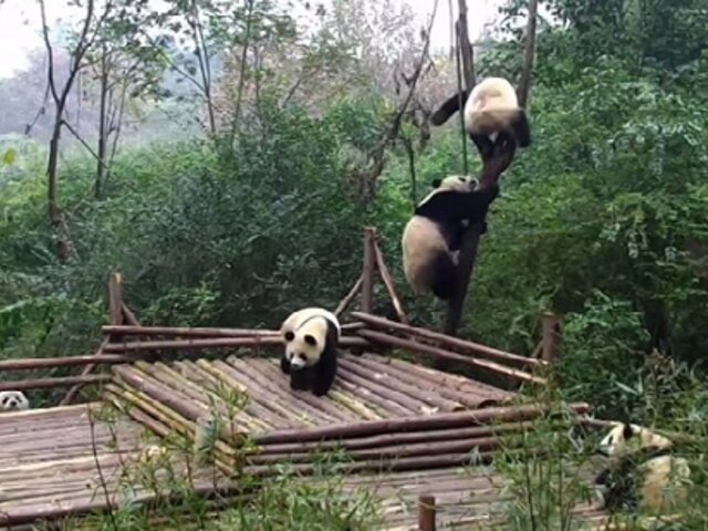 Los osos pandas se caracterizan por protagonizar conmovedores y tiernas escenas. Esta vez un grupo de estos mamíferos fueron captados por un video en el que se les ve luchando por ser el dueño de un árbol en su refugio. En las imágenes se aprecia como un panda defiende su árbol golpeando a uno de sus compañeros, haciéndolo caer del árbol. Poco después, otro de estos animales le roba su lugar al escalar hábilmente el tronco. El video registrado en YouTube cuenta con más de dos millones de reproducciones.