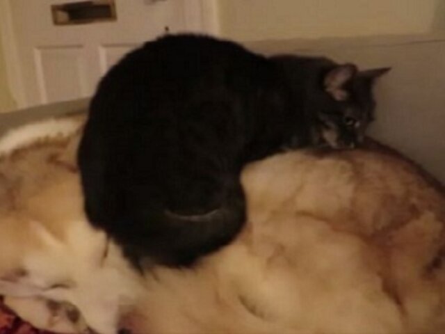 Los perros y gatos pueden convivir en paz y ser grandes amigos en algunas ocasiones. Así lo demuestra un video registrado en YouTube en el que se observa a un felino dormir tranquilamente sobre un perro. En las imágenes se ve como el gato decide tomar una siesta y para ello convierte a un perro en su cama. El resignado can de raza husky siberiano, reposaba plácidamente en un sofá hasta que el atrevido felino hizo su aparición. El minino no sólo acomoda al perro como si fuera una verdadera cama, sino que se toma todo el tiempo necesario para buscar el lugar más cómodo para instalarse, dejando a su compañero en una situación un tanto incomoda. El video ya cuenta con más de 435 mil reproducciones.