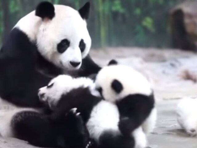 Los primeros trillizos de oso panda gigante nacidos en China, han vuelto a hacer noticia con una emotiva escena que está causando sensación en las redes sociales. En las imágenes se aprecia la tierna pelea que protagonizan los hermanos por llegar a los brazos de su madre, Ju Xiao, quien los acoge cariñosamente. El clip, difundido a inicios de marzo, alcanzó más de 10 mil reproducciones en YouTube.
