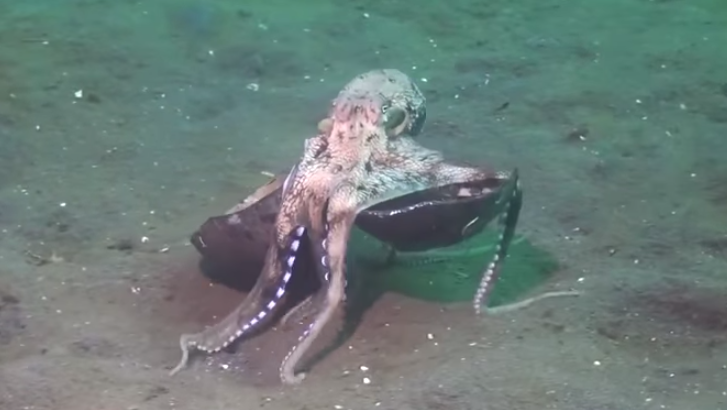 Insólito: pulpo gigante que construye casa con un coco sorprende a internautas