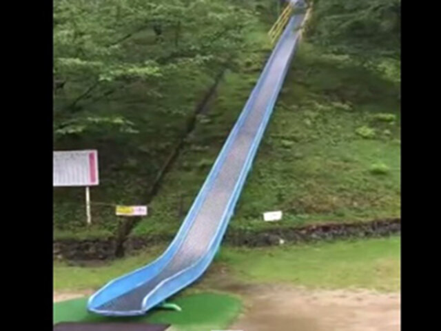 Decimos ‘casi todos’ porque en algunas ocasiones esto no ocurre, tal como sucede con el tobogán de este video que parece ser muy extremo. Más allá de su vertiginosa caída y el largo trayecto de la misma, este tobogán no tiene como fin llegar a una piscina sino que simplemente sirve para deslizarse sobre una gran loma.