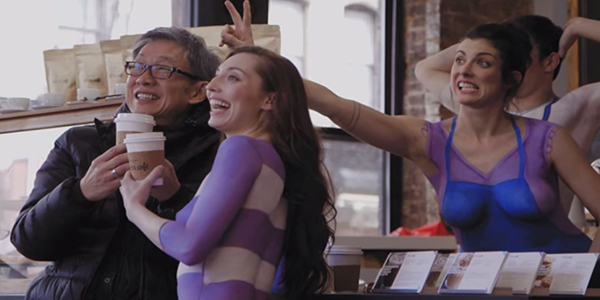 Al ingresar al lugar se dieron con la sorpresa de que todos los empleados estaban cubiertos de ‘body paint’ para promocionar su nueva marca de crema para café: “Somos el café puramente natural. ¡Sorprendentemente natural!”, dijo la que resultó ser una actriz enfundada en un delantal de pintura.