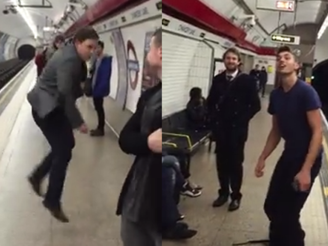 Dos jóvenes en Londres se encontraban esperando el tren en una de las estaciones. Al parecer, el aburrimiento les indujo a tomar una insólita, pero divertida decisión.