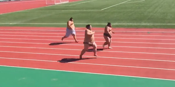 VIDEO: luchadores de sumo compiten en una curiosa carrera de 60 metros planos
