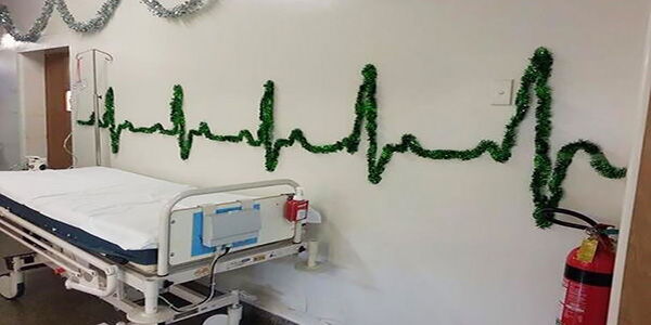 Los pasillos de un centro médico son poco coloridos durante todo el año pero en diciembre pueden tener un toque navideño especial.