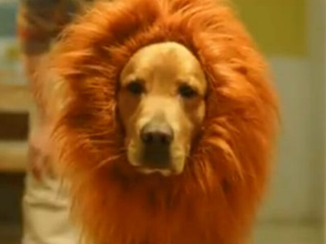 El material muestra cómo un can se disfraza de león para convencer a un niño.
