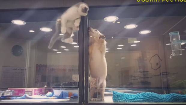 Una tienda de mascotas en Taipéi, Taiwán, publicó un material en el que se ve cómo un gatito intenta escapar de su jaula, para visitar a su vecino.