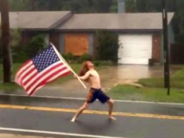 Este ha sido el caso de Lane Pittman, un residente de Florida quien en solo un día se convirtió en todo un fenómeno viral en Facebook con un video de solo 10 segundos, donde con el torso desnudo, su larga cabellera y una bandera de los Estados Unidos, se ‘enfrenta’ al huracán.