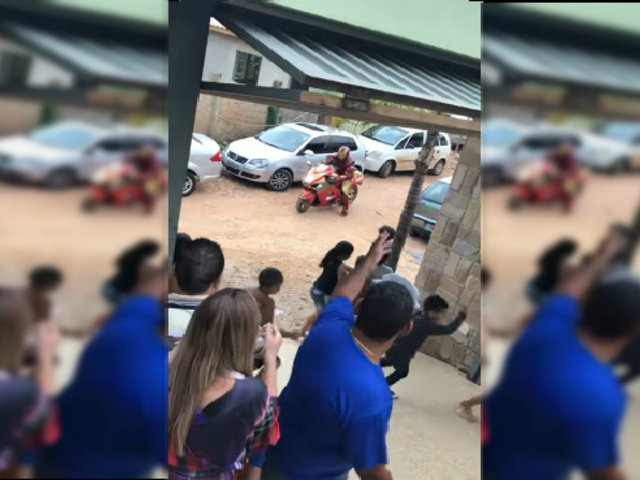 Al parecer, el sujeto no tenía experiencia manejando una moto lineal y en su ‘entrada triunfal’ terminó en el piso, en medio de los gritos y risas de los invitados.