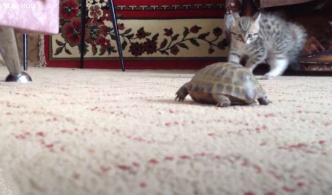 El video del encuentro entre un gatito que juega e interactúa con una tortuga ha enternecido a miles, convirtiéndose rápidamente en un éxito viral de Facebook. El clip fue visto más de 30 millones de veces en menos de 24 horas.