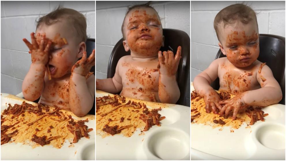 En el video de 38 segundos se ve cómo el pequeño come sus espaguetis aunque se ‘muere’ de sueño. El clip está a punto de llegar a las 100 reproducciones en YouTube.