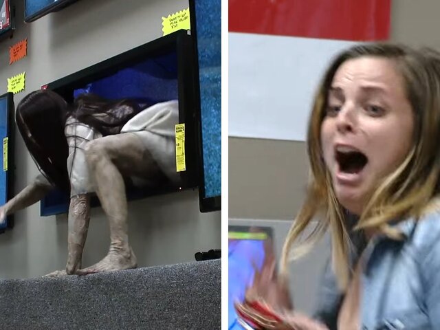 Los estudios Paramount Pictures elaboraron la espeluznante broma en una tienda real de artículos electrónicos en Nueva York, cuyo video ya se viralizó en las redes sociales.