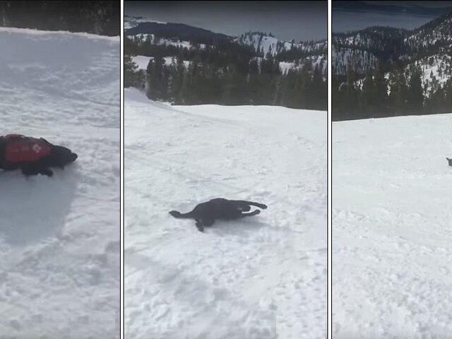 Mira cómo este adorable perro rescatista ama deslizarse montaña abajo