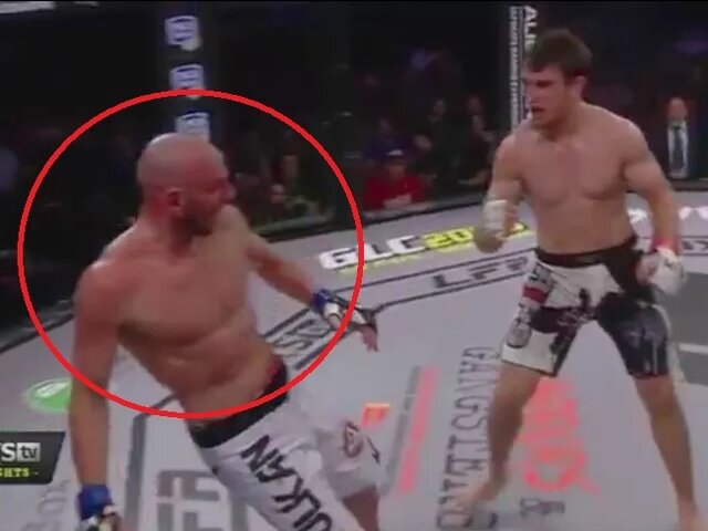 El deportista estadounidense de encontraba en la mitad de una pelea contra Nicolas Vertennikov, cuando intentó conectar una sofisticada patada de giro para sorprender a su rival, pero en lugar de dar un golpe de fantasía perdió el equilibrio provocando las burlas del público.