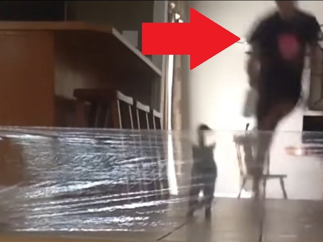 La joven colocó una cinta de plástico a modo de barrera para que su gato corriera a toda velocidad y se topara contra él, pero le salió mal la jugada y terminó siendo ella el punto de burlas.