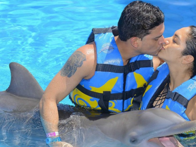 "Me encanta haber cumplido uno más de tus sueños. Mi amor, mereces eso y más. Además tú estás cumpliendo el sueño de mi vida, y por eso te debo demasiado...Te amo mi amor", escribió Domínguez en un foto donde ambos salen acariciando a un delfín.