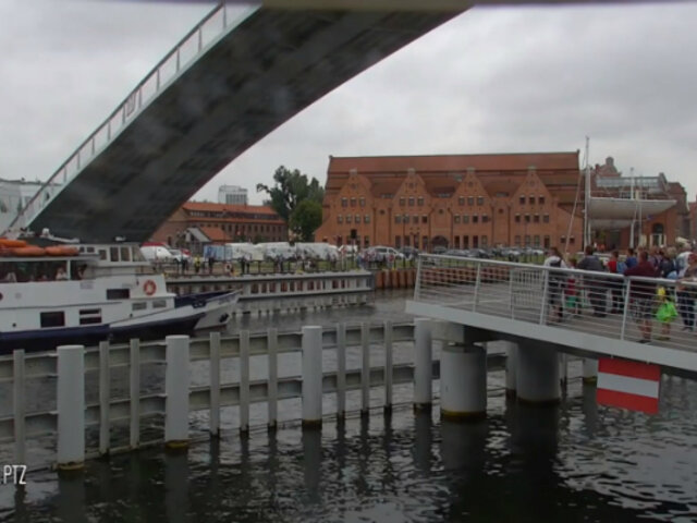 En el rio Moldava, ubicado en República Checa, un puente levadizo empieza a descender para dejar pasar a los peatones. Pero el capitán del barco que navega por el rio no piensa esperar.