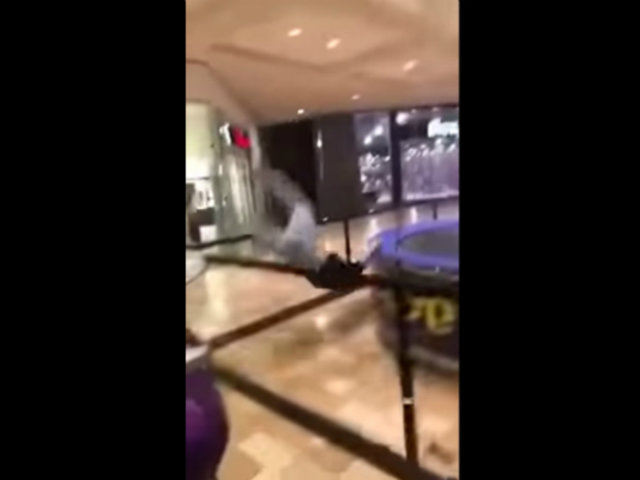 En una centro comercial ubicado en Georgia, Estados Unidos, un sujeto tuvo la espectacular idea de querer probar la cama elástica, pero de una manera poco convencional.