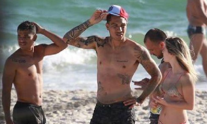 Aprovechan sus días de relax. Paolo Guerrero dejó de lado la difícil situación que afronta con la FIFA y decidió disfrutar de un caluroso día de playa en Brasil junto a su novia Thaísa Leal.